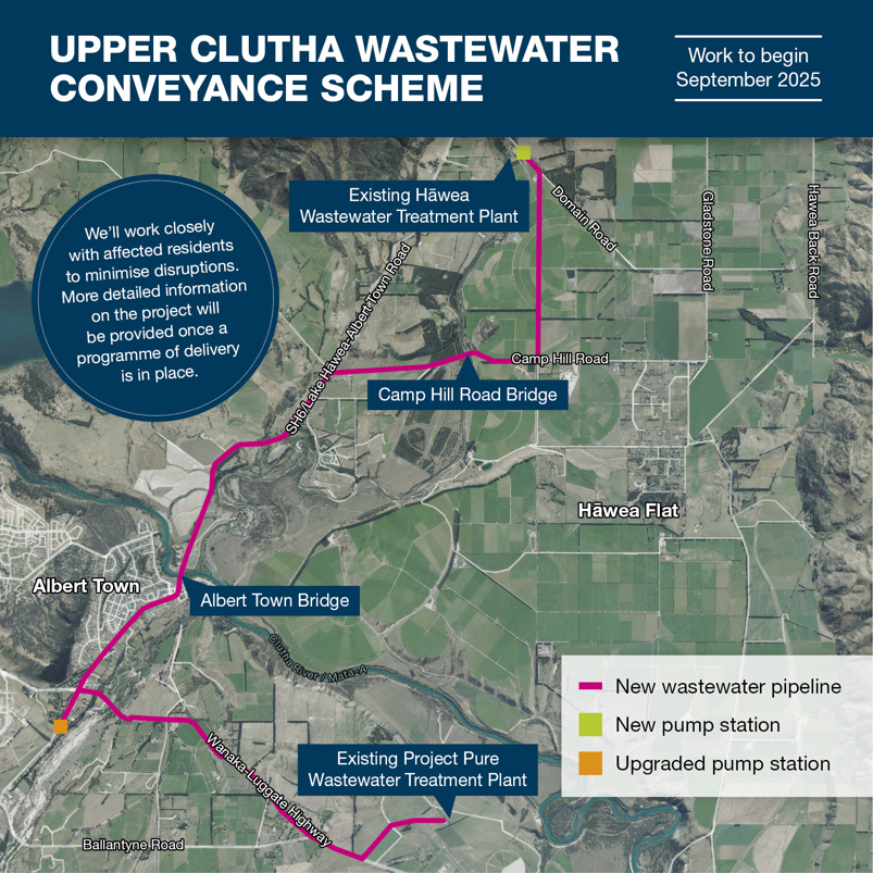 We’ve been engaging with NZTA Waka Kotahi throughout the design process for these wastewater upgrades and can confirm the new pipeline will be attached to Albert Town Bridge. We have taken steps during design to ensure that in the event the bridge is replaced, the wastewater pipe can be realigned and attached to the new bridge.
