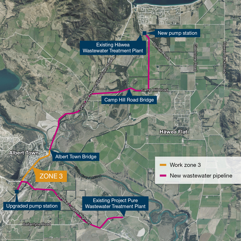 Construction of a new wastewater pump station (WWPS) at Domain Road in Hāwea and a 12.5km 315mm diameter pipeline from Domain Road to existing infrastructure at the Albert Town WWPS.