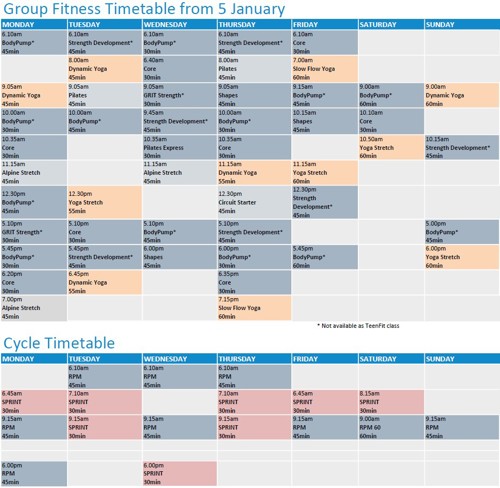 Group fitness timetable from Monday 5 January
