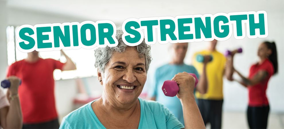 Senior Strength is a 60-minute class consisting of 30 minutes of low impact aerobics and 30 minutes of strength, balance and flexibility. Join us to boost your mobility and strength, have some fun, and connect with others!