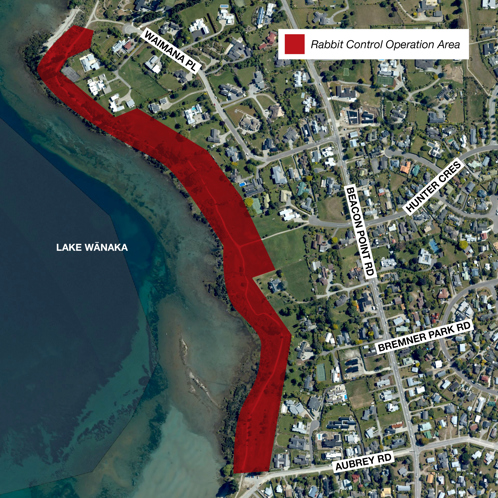 A professional contractor will carry out a night shooting rabbit operation within the fenced area of the QLDC Lakefront Reserve between Beacon Point and Waimana Place in Wānaka.