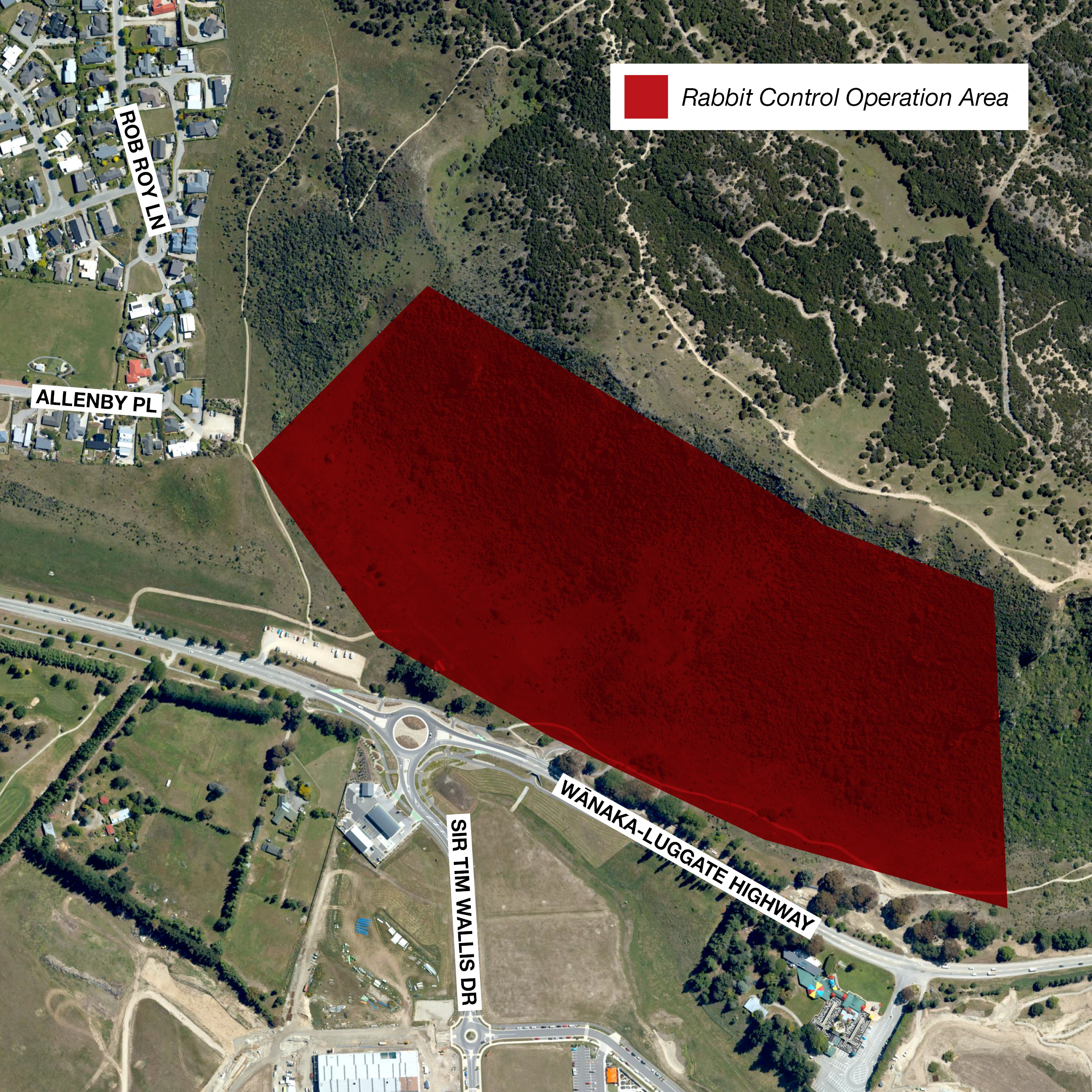 A professional contractor will carry out a night shooting rabbit operation in Mount Iron Reserve, from the southern area of the reserve parallel to Wānaka-Luggate State Highway 84.