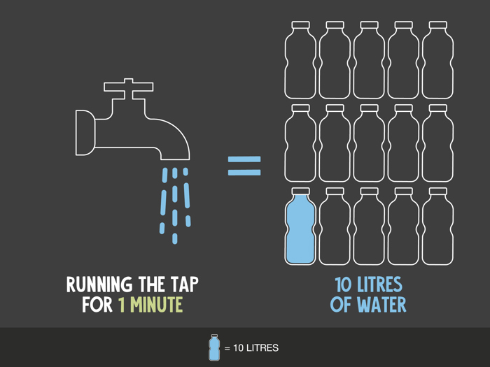 Running a tap for one minute can use up to 10 litres of water.