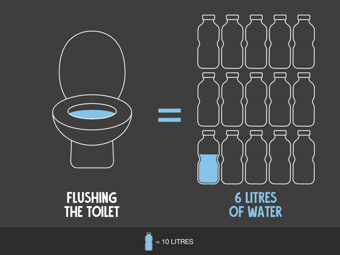 A flush of the toilet can use up to 6 litres of water.