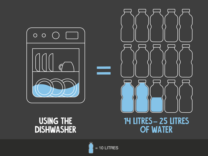 Running the dishwasher can use between 14 and 25 litres of water in one go.