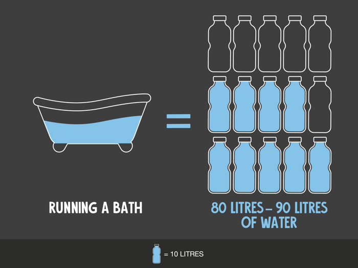 Running a bath could use between 80 to 90 litres of water at a time.