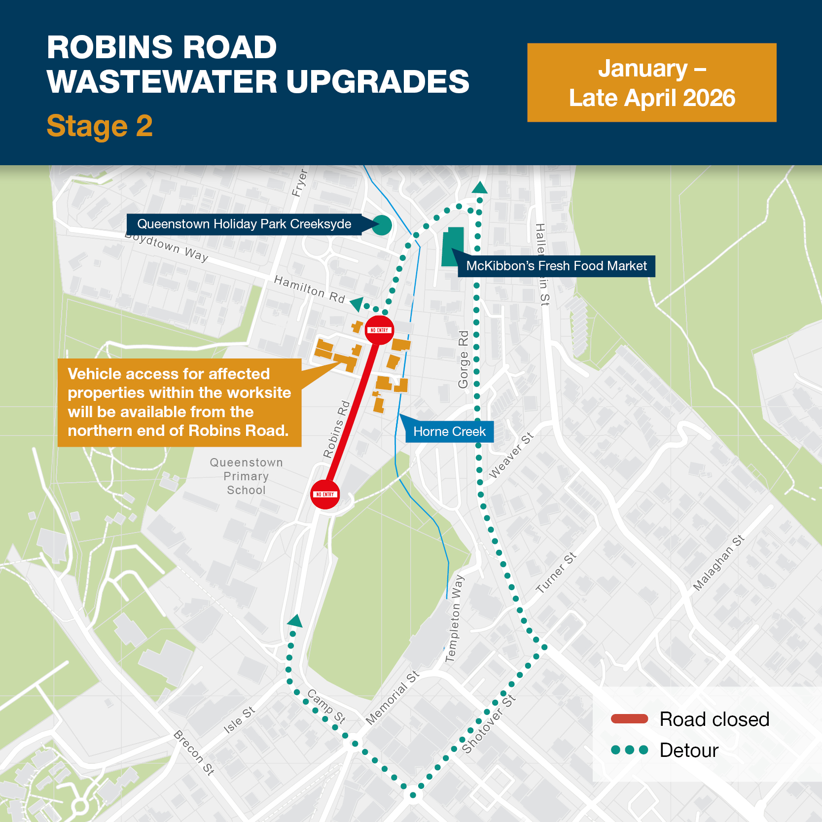 We’re upgrading wastewater infrastructure on Robins Road in Queenstown as part of our ongoing commitment to improving local infrastructure and ensuring a clean and healthy environment for everyone.